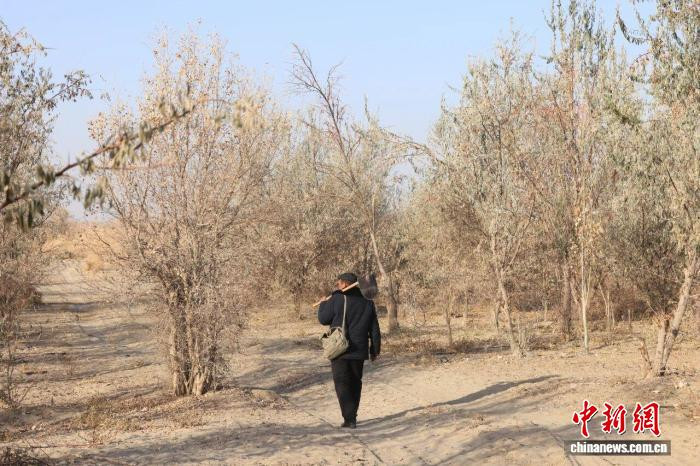 中新网新疆麦盖提11月27日电(任鹏程陈文军艾斯凯尔·赛麦提)冬日的塔克拉玛干沙漠透着刺骨寒意。近日个人股票配资,在新疆麦盖提县沙海林场的林间小道上,护林员阿布都莫明·衣明一大早便开始了一天的巡护工作。
